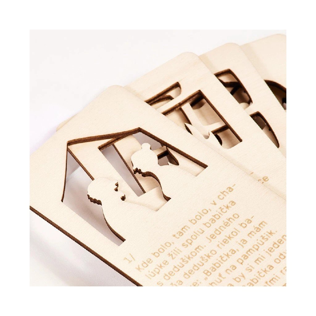 Rozprávková sada obsahuje osem kusov drevených kartičiek určených na presvietenie. Produkt je koncipovaný pre rodičov tak, aby mohli zároveň premietať aj čítať príbeh svojim deťom. 🖌️✨