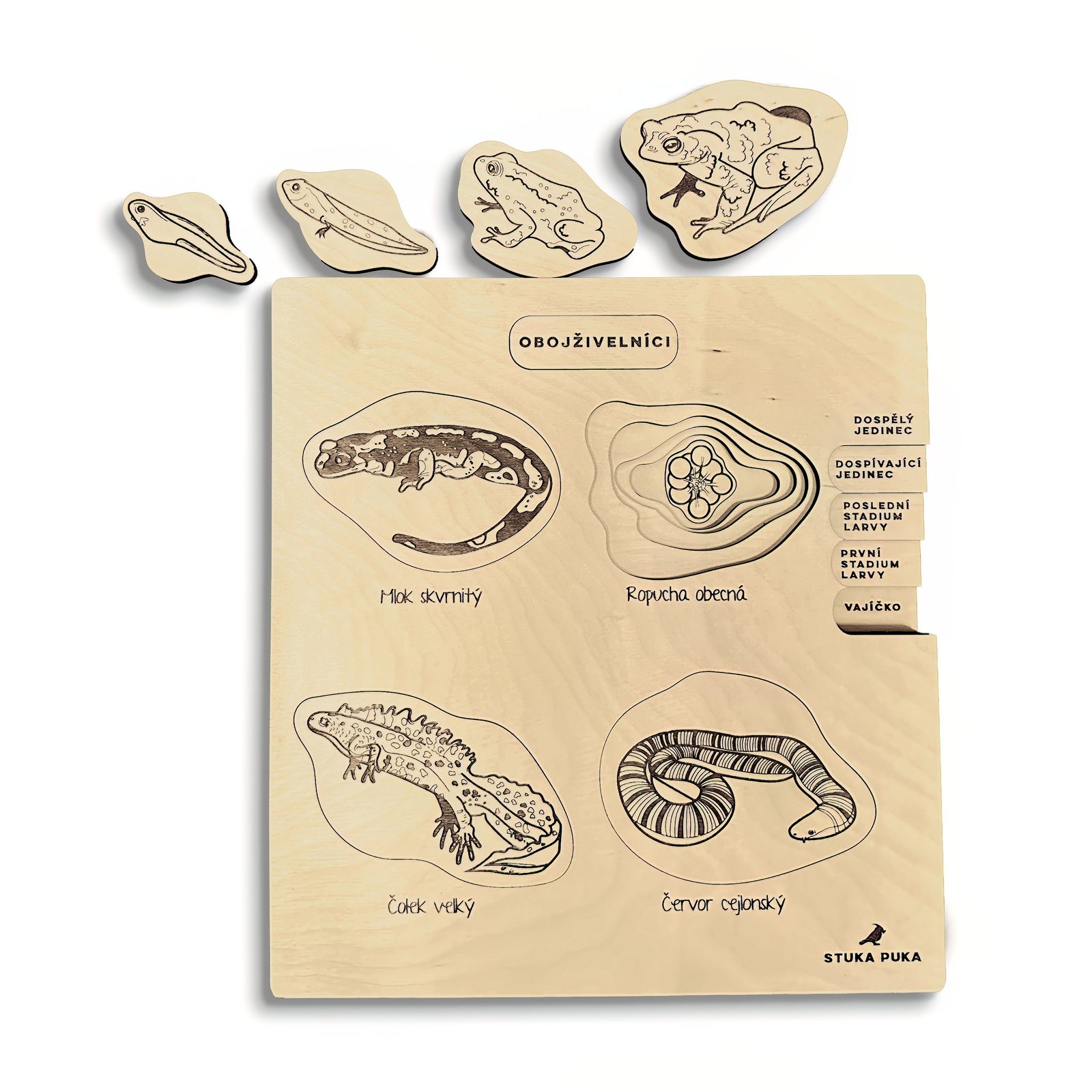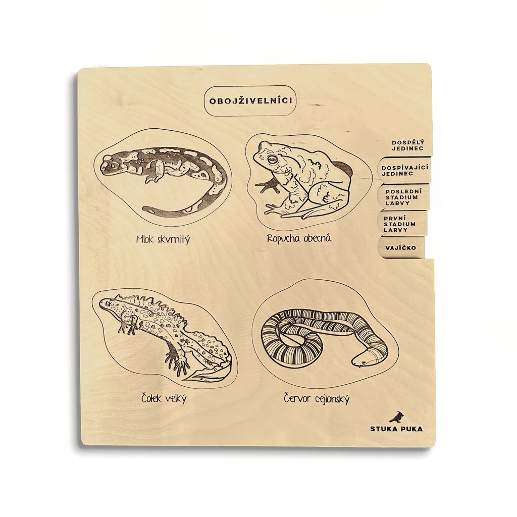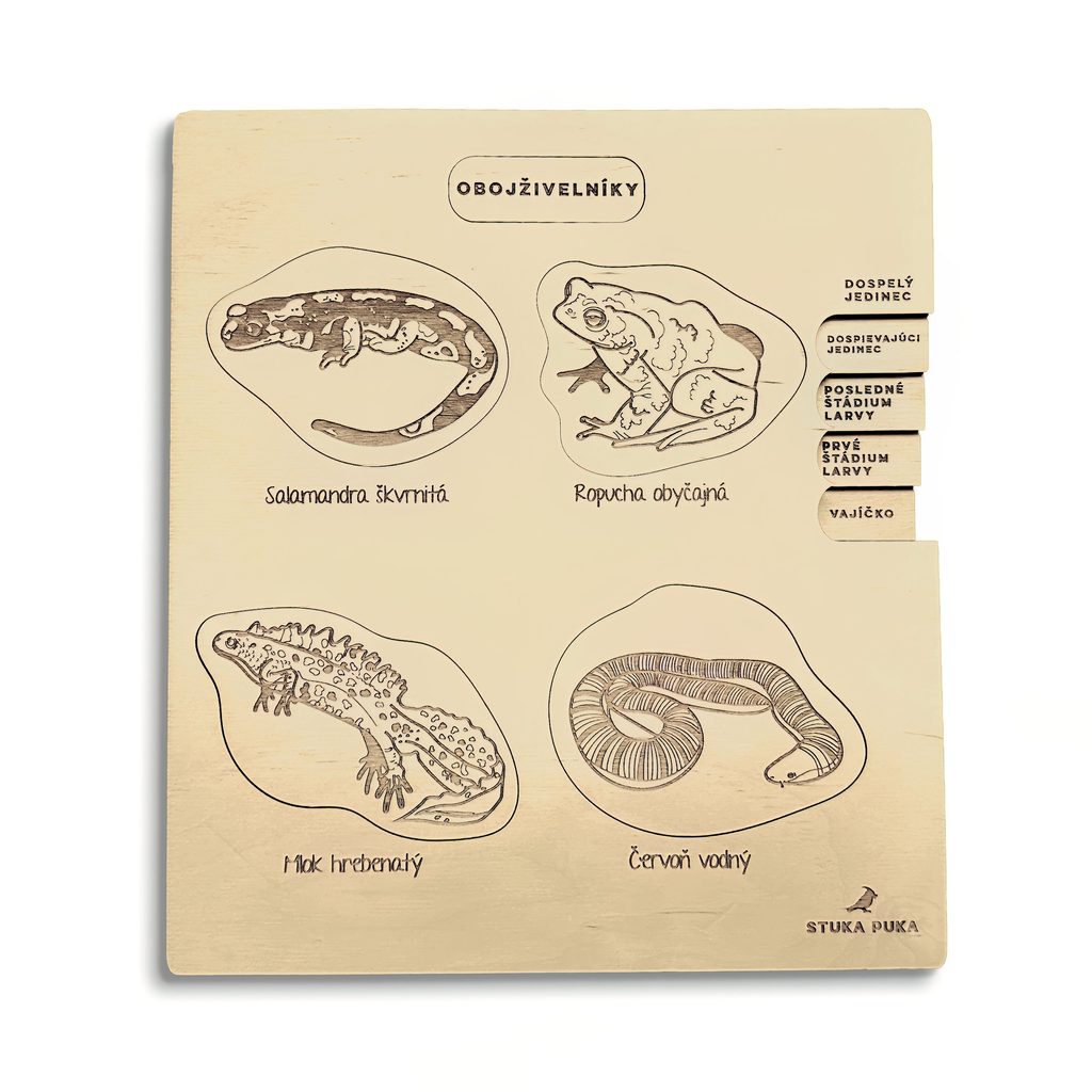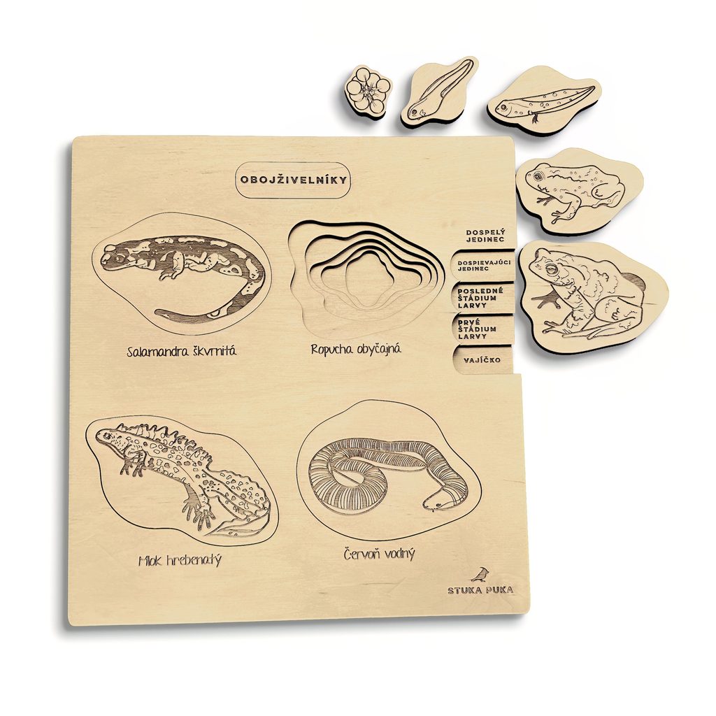 VZDELÁVACIE DREVENÉ PUZZLE - ŽIVOTNÝ CYKLUS OBOJŽIVELNÍKOV