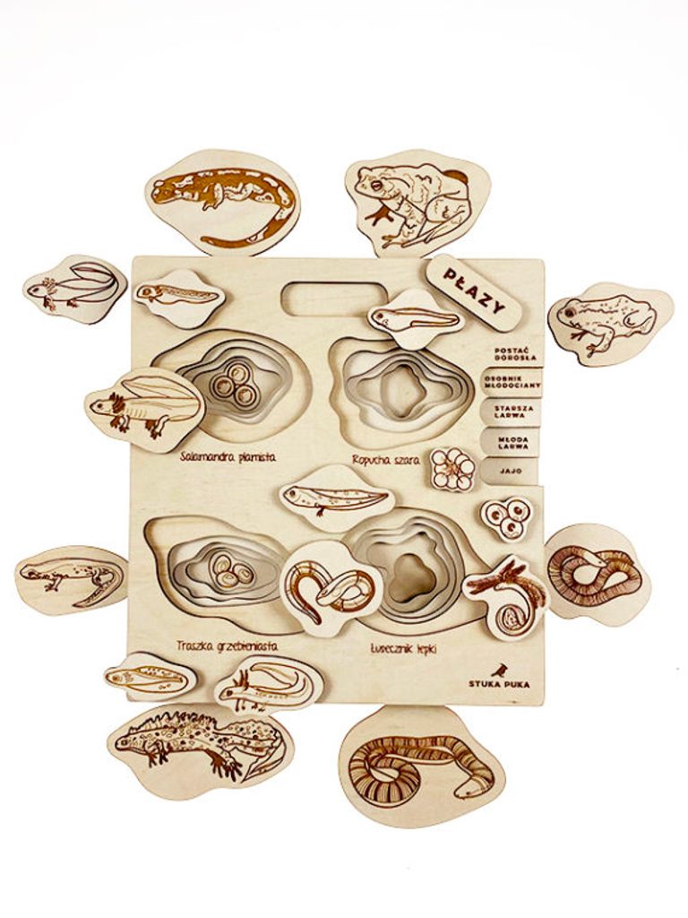 Zamilujte si mloky, salamandry a ropuchy a objavte beznohé obojživelníky pochádzajúce z odľahlých oblastí Južnej Ameriky a Ázie. Drevené puzzle"Životný cyklus plazov" je prvou časťou našej novej série "Stavte na evolúciu", ktorá systematizuje vývojové cykly rôznych druhov a robí z učenia veľké dobrodružstvo.