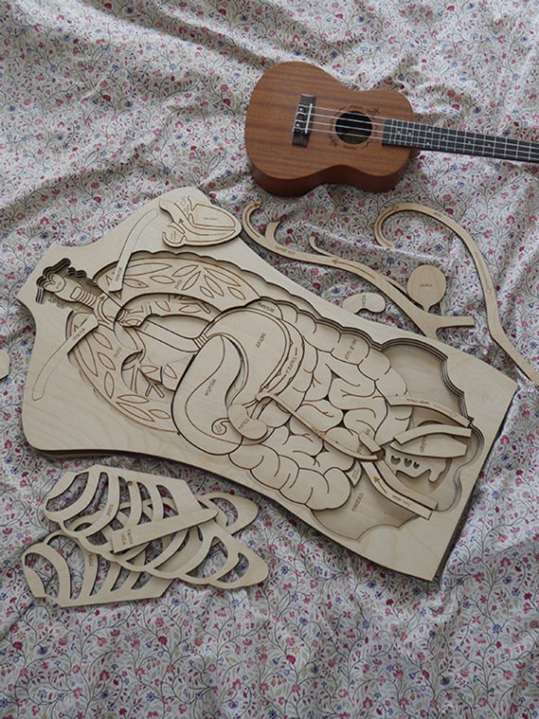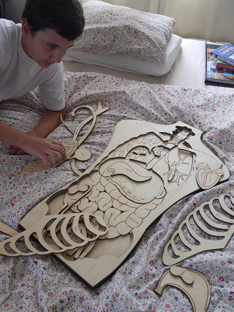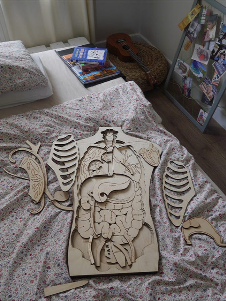 Toto päťúrovňové puzzle v životnej veľkosti vás naučí niečo o anatómii človeka a premení vaše hodiny biológie na fantastické dobrodružstvo!Objavte kostrový, tráviaci, obehový, dýchací a močový systém. Pozrite sa na veľkosť orgánov a kostí, zistite, čo skrýva hrudník, aké dlhé sú črevá a čo ďalšie skrývajú brušné dutiny.
