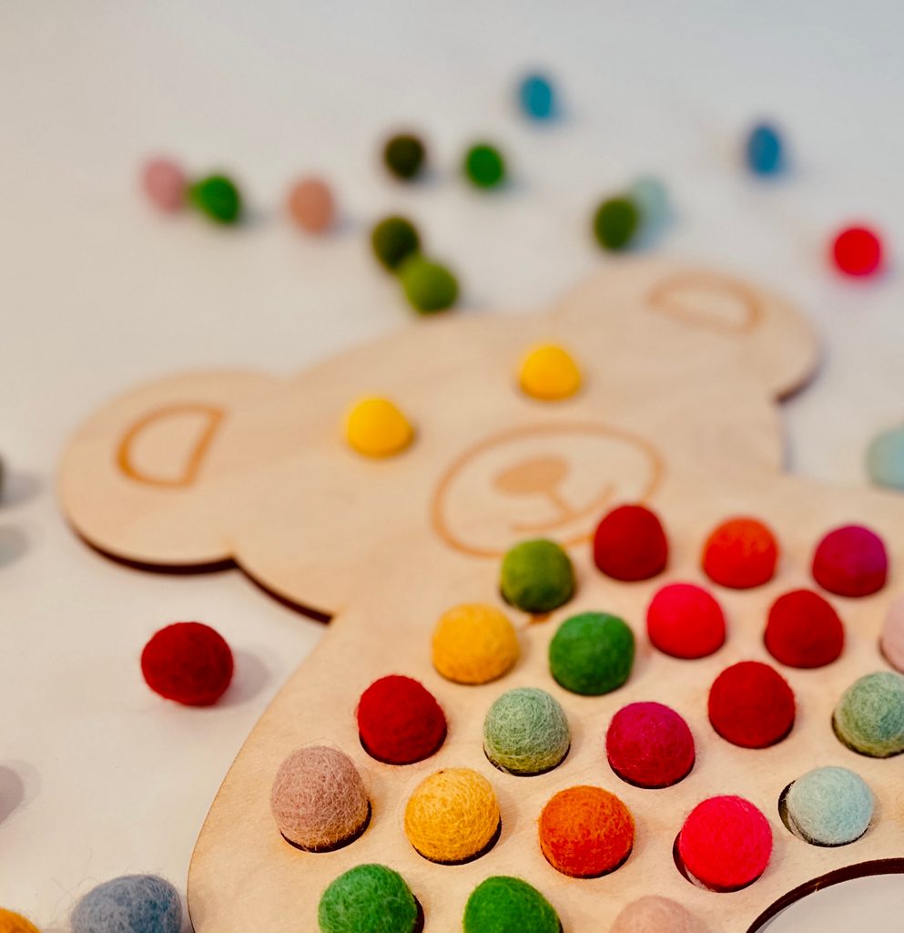 Hlavné vlastnosti: - Podpora jemnej motoriky: Vkladanie guľôčok do otvorov ruka-oko. - Rozvoj koncentrácie: Sústredená činnosť, ako je práca s pinzetou, zlepšuje koncentračné schopnosti detí. - Učenie vzdelávacie aktivity, ako sú farby, počítanie a rozpoznávanie zvierat. - Bezpečný a trvanlivý materiál: Vyrobené z vysoko kvalitného dreva. - raného školského veku.